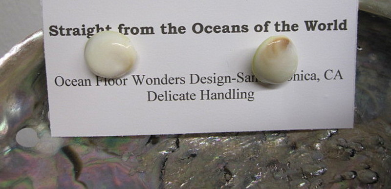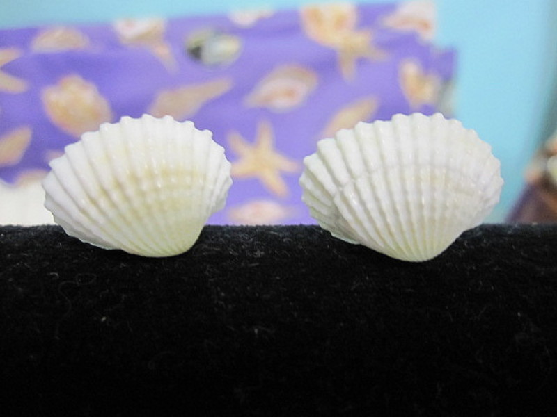 Clam Shell Earrings are 3/4" x 1/2". Natural Color. Click image to enlarge.