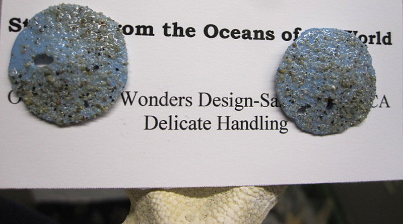 Earrings are 1". Turquise Painted with Santa Monica Sand. Click image to enlarge.