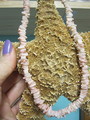 Necklace is 7 1/2" and all light pink shells with a screw clasp. Click large image to enlarge. Click small image. Move cursor to large image. Click again.
