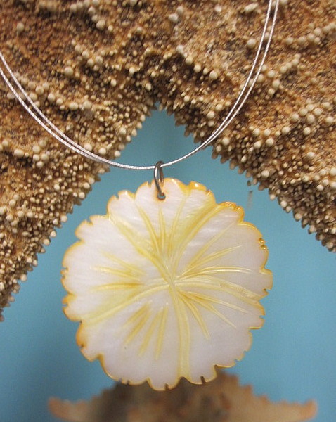 Necklace is 7 1/2" and wire with a closed hook clasp. Yellow shell is 1 1/2". Click large image to enlarge. Click small image. Move cursor to large image. Click again.