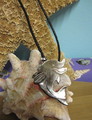 Necklace is 8" and leather with a closed hook clasp. Abalone dolphin is 1 1/2". Click large image to enlarge. Click small image. Move cursor to large image. Click again.