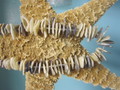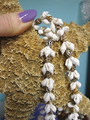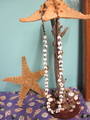 Necklace is 16 3/4" with tiny white and brown shells. Click large image to enlarge. Click small image. Move cursor to large image. Click again.