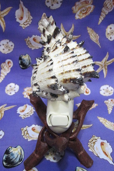 Shell is 3 1/4" tall plus plug. Stand not included but available to buy on sea shell treasure page. Click image to enlarge.