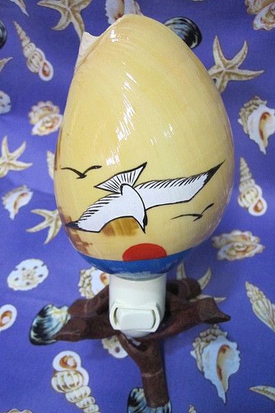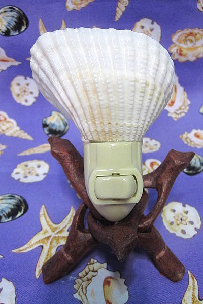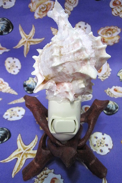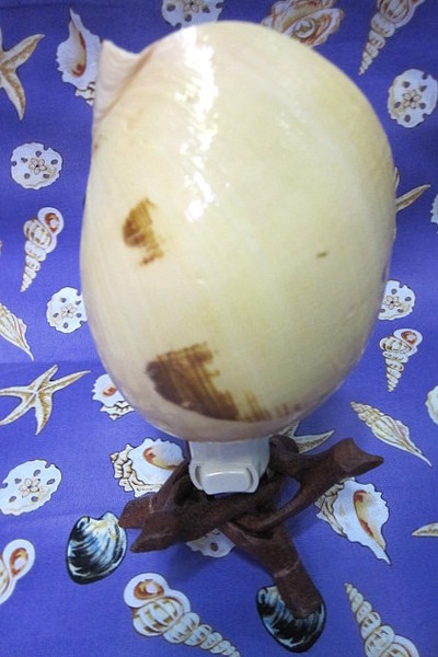 Shell has smaller width. 3 1/4" tall plus plug. Stand not included but available to buy on sea shell treasure page. Click image to enlarge.