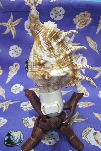 Shell is 5" tall plus plug. Stand not included but available to buy on sea shell treasure page. Click image to enlarge.