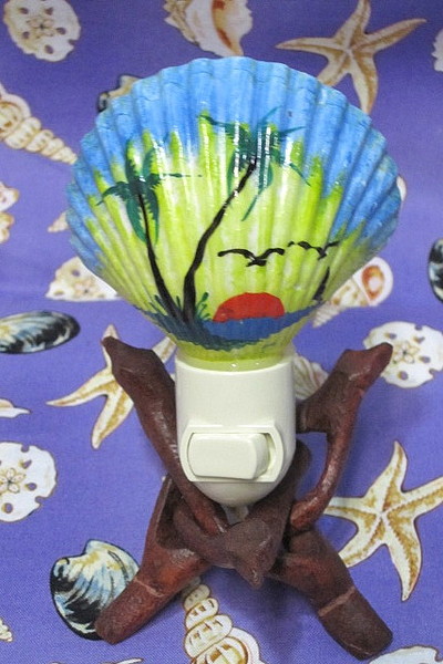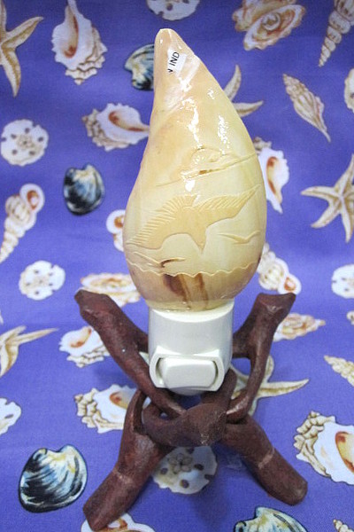 Shell is 3 1/4" tall plus plug. Stand not included but available to buy on sea shell treasure page. Click image to enlarge.