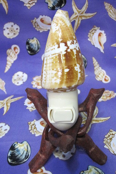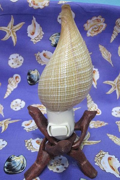 Yellowish Beige Shell is 2 1/2" tall plus plug. Stand not included but available to buy on sea shell treasure page. Click image to enlarge.